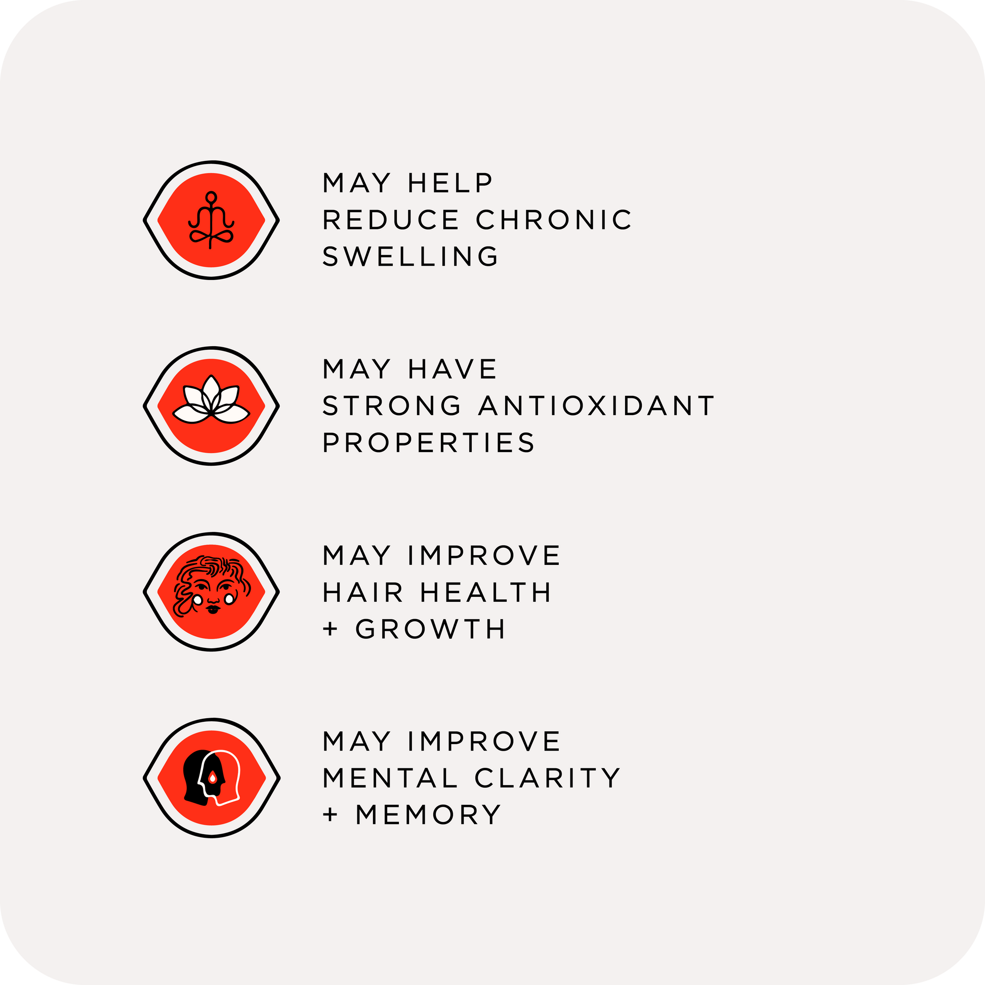 Benefits: reducing muscle pain and joint inflammation, cardiovascular health, mental clarity
